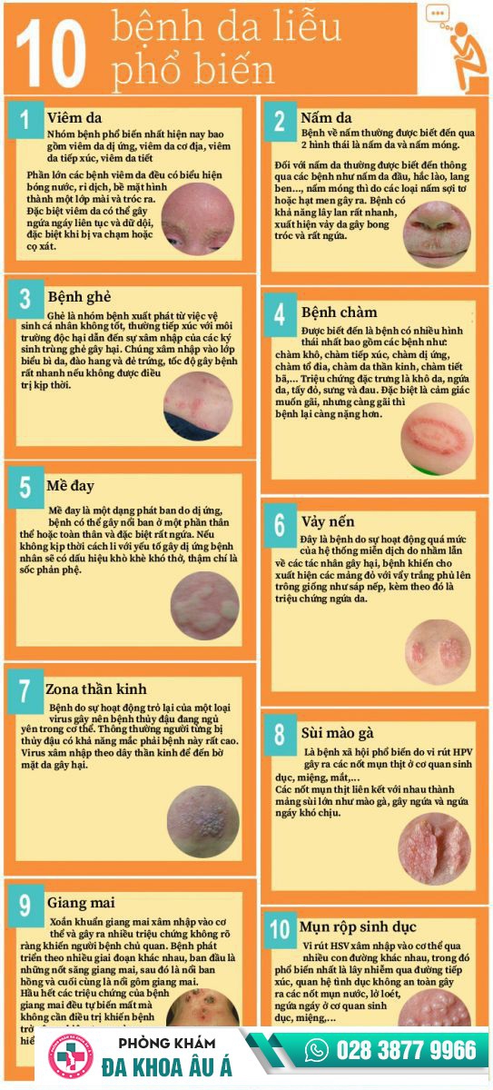 Một số bệnh da liễu phổ biến hiện nay: