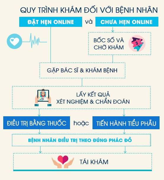 Quy trình khám chữa bệnh nhanh gọn, chính xác: Thủ tục đơn giản và được chỉ dẫn cụ thể, tiết kiệm thời gian và công sức cho bệnh nhân bằng khâu đăng ký khám ưu tiên online cho đến việc không phải ngồi chờ lâu khi đến khám.