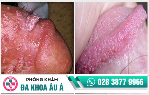 Trong trường hợp chuỗi hạt ngọc dương vật có kích thước lớn, mọc thành từng mảng, xuất hiện ở nhiều vị trí trên dương vật thì rất có thể bạn đang bị sùi mào gà.