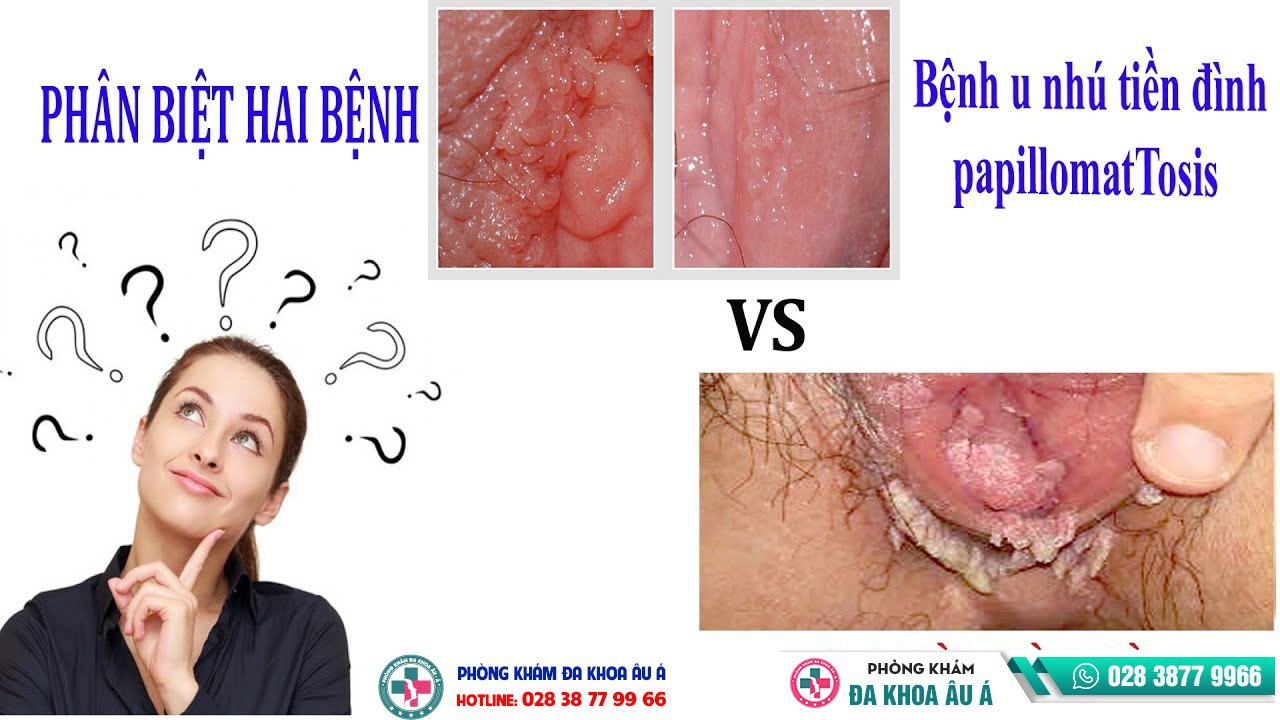 Tiền đình u nhú Papillomatosis các nốt sùi mọc đối xứng hoặc mọc thành 1 dải, màu trùng với màu da niêm mạc (hồng hồng đỏ đỏ) còn sùi mào gà thì mọc lung tung.